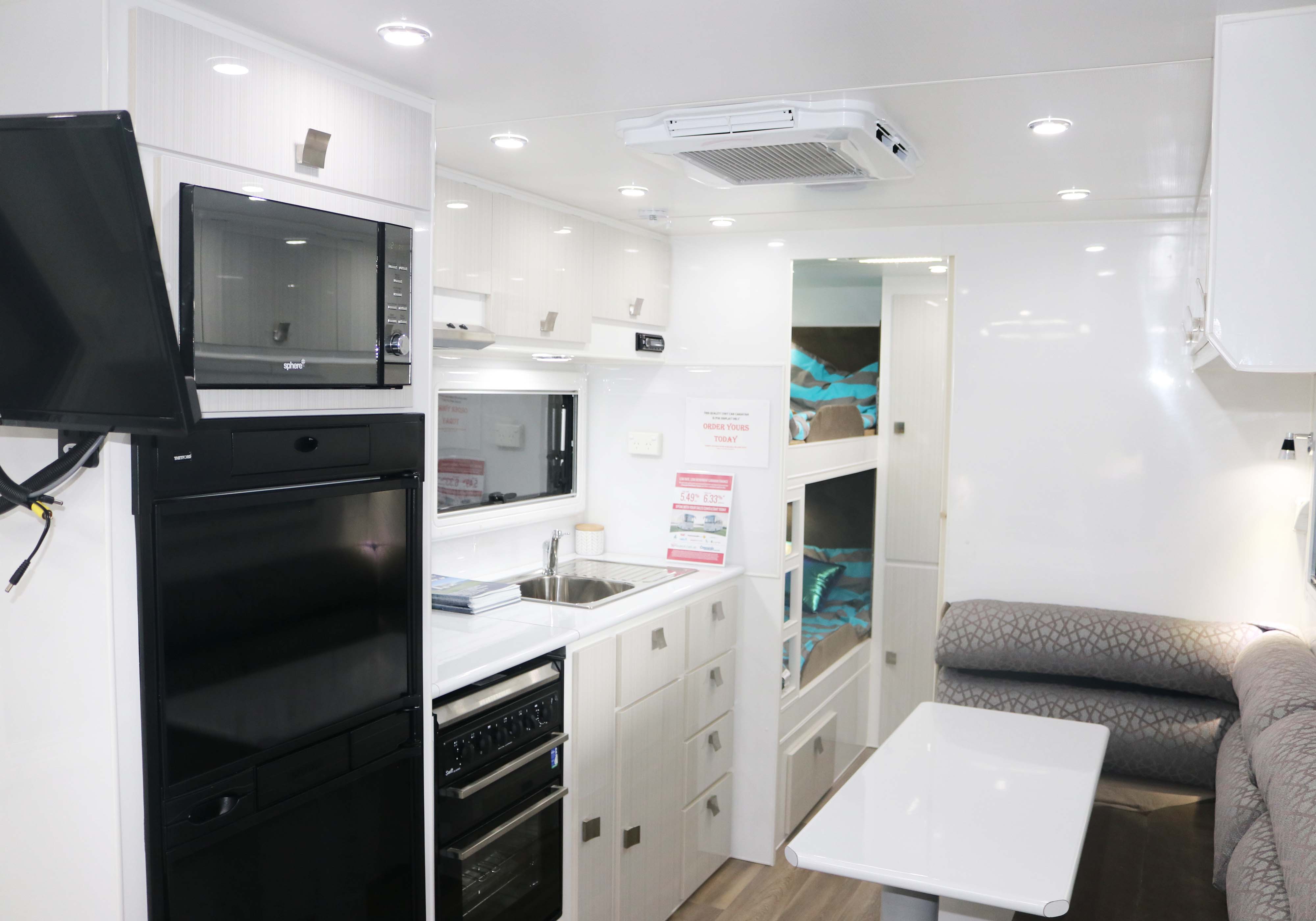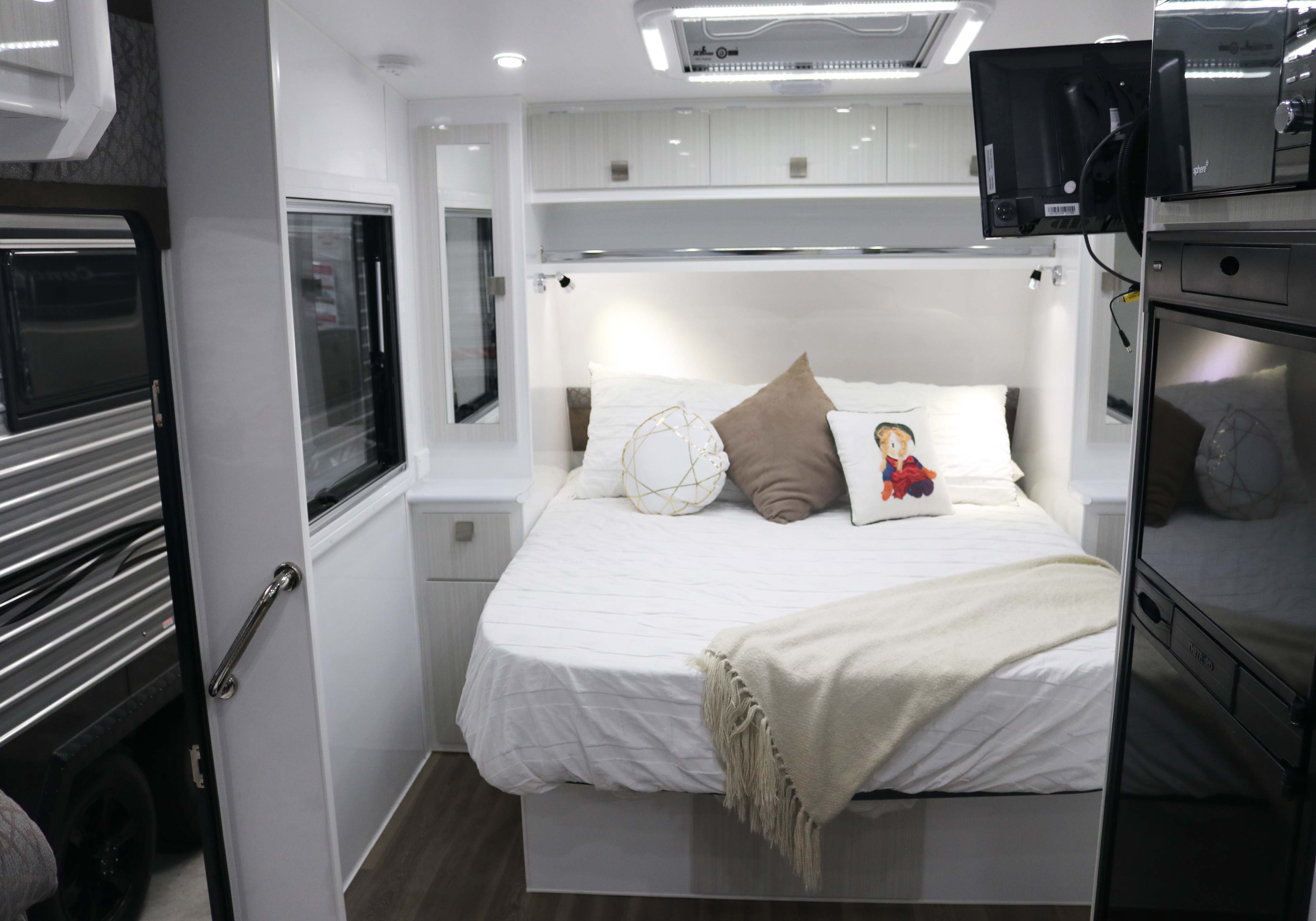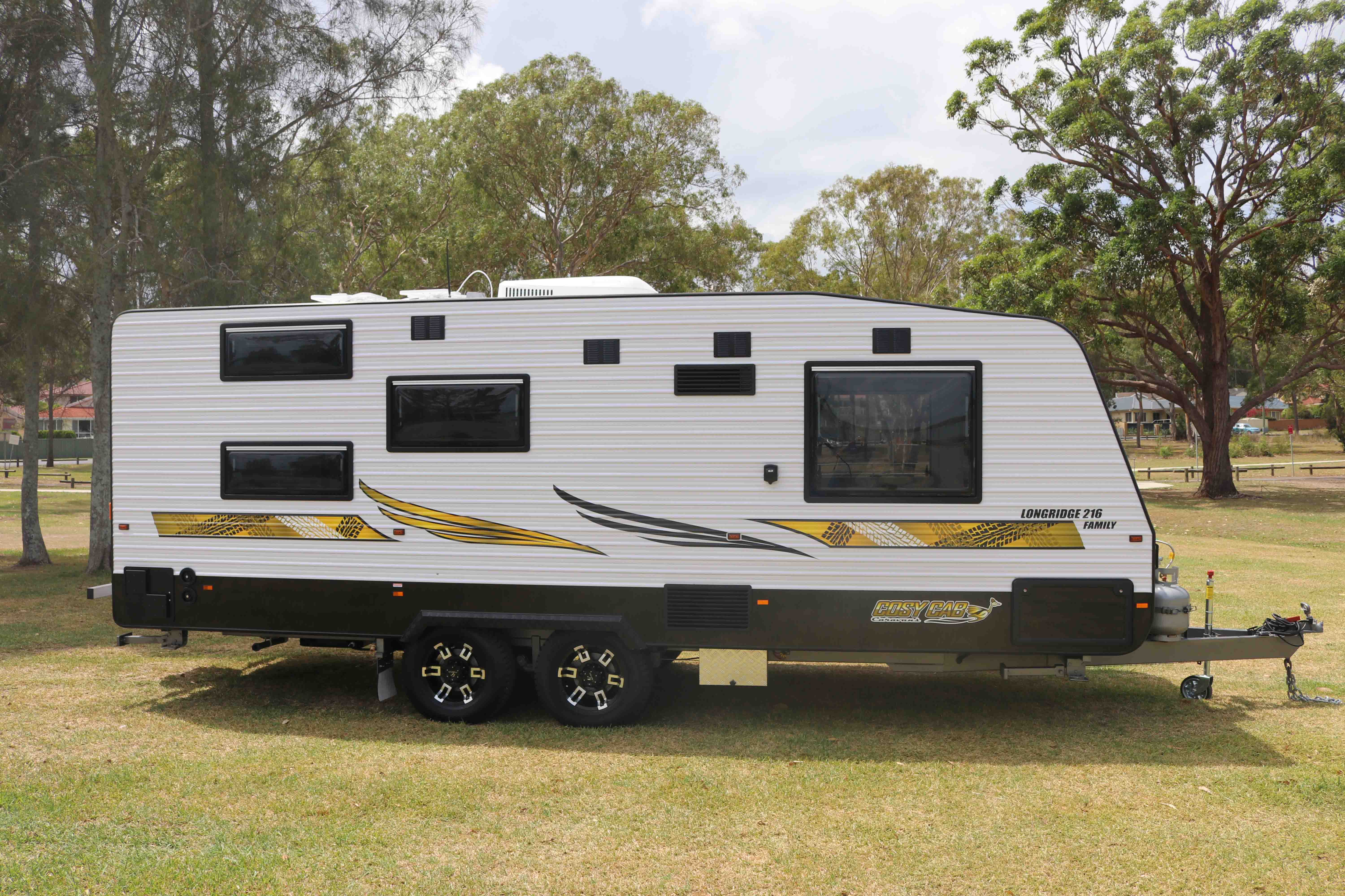 The Longridge at 21’6″ is a compact family van that still has the lot. Your choice of 2 or 3 bunks to the rear with the main queen bed up front for privacy. Separate shower toilet and washing machine, “L” shaped dining/lounge area and plenty of room to move. Take the kids and see this great land.