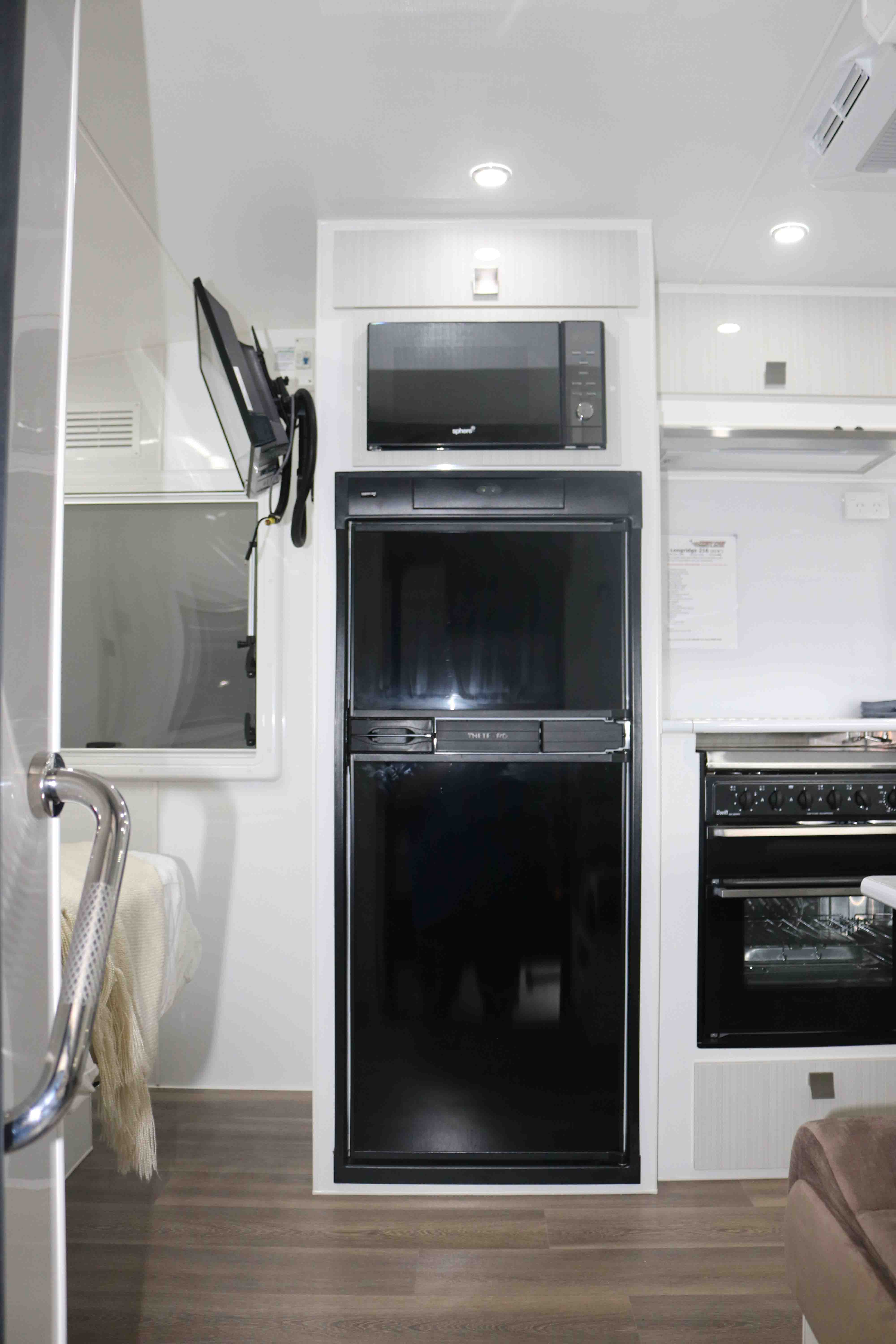 Stainless-steel Microwave on top of the fridge External TV socket